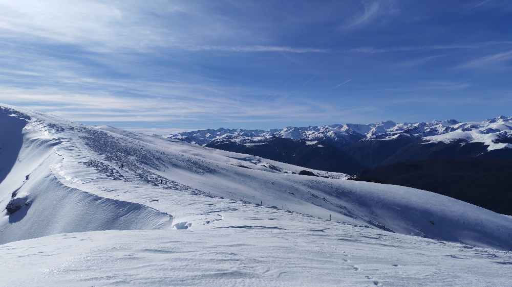 À cheval entre coteaux et hautes cimes (du pic de Rulhe au pic du Midi de Bigorre, en passant par les trois 3 000 m ariégeois), ce belvédère de choix, probablement le plus beau en hiver, nous offre un tour d’horizon à 360° exceptionnel.
