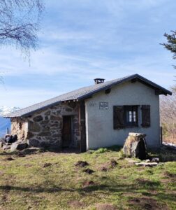 Après une petite heure éblouissante, nous reprenons le sens de la descente, faisons un petit détour (pour sortir de l’itinéraire fréquenté) par la cabane des Carmilles (hommage à Henri Tartie), fonctionnelle, 8 à 10 couchages, cheminée. Nous faisons une dernière pause au soleil à une table et des bancs en pierre…