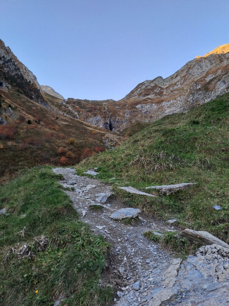 À 8h15, nous commençons notre randonnée, au départ de l’Hospice de France, avec les premières lueurs du soleil. Le sentier pour monter jusqu’au Port de Venasque est très bien tracé et facilite l’ascension.