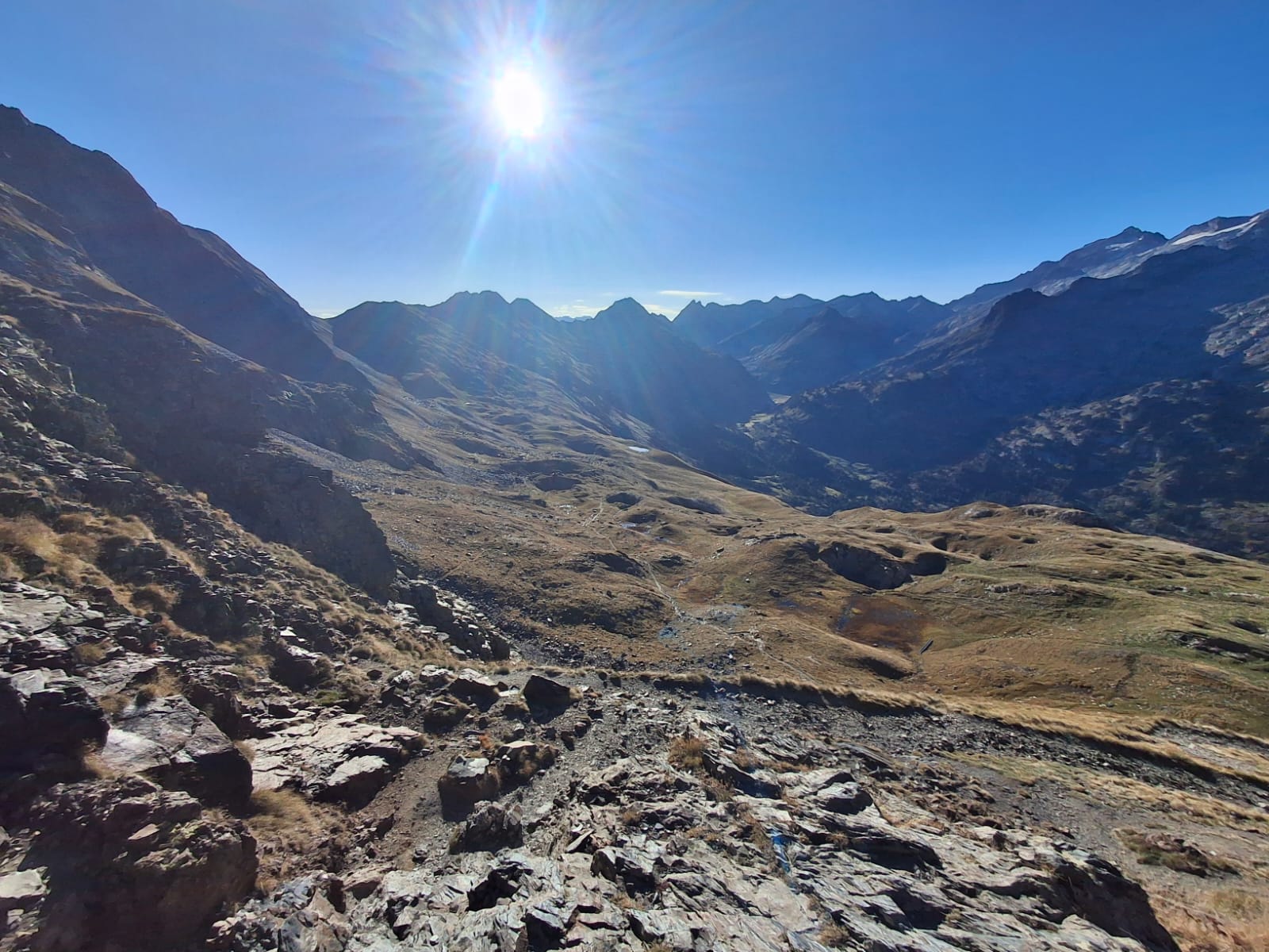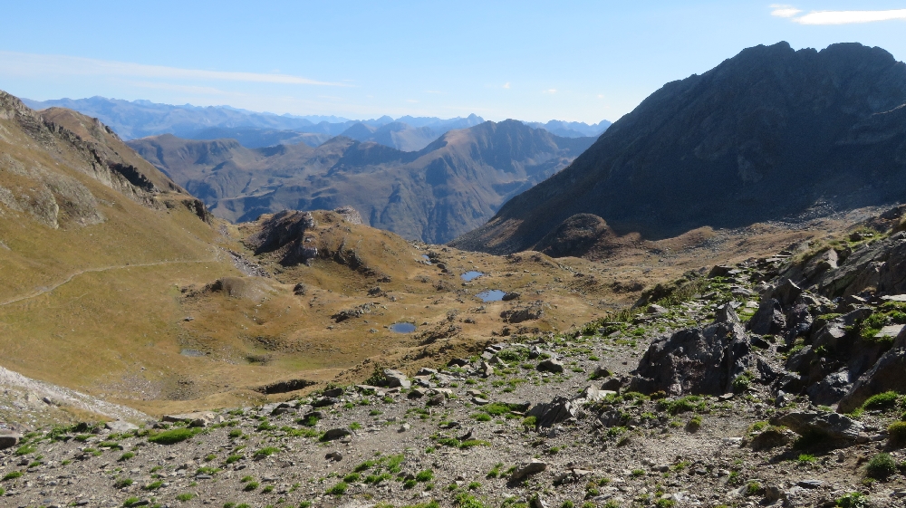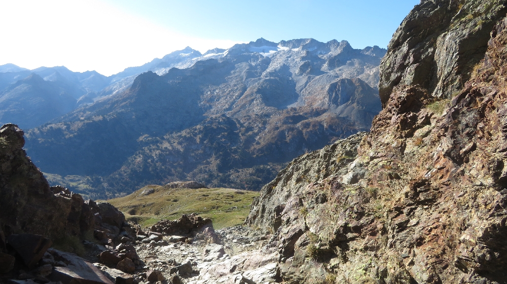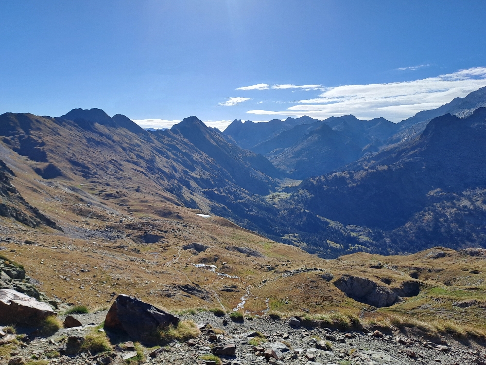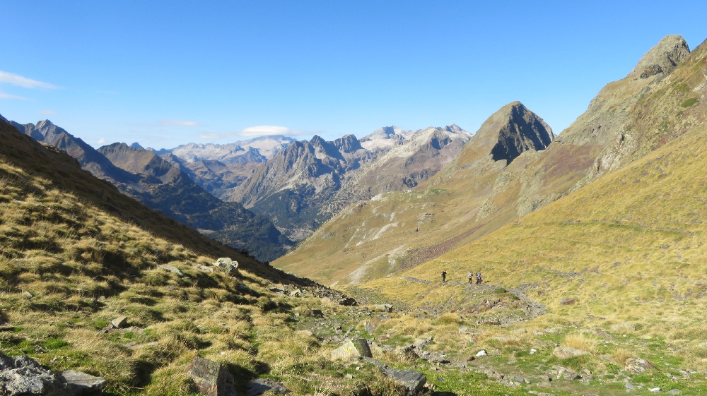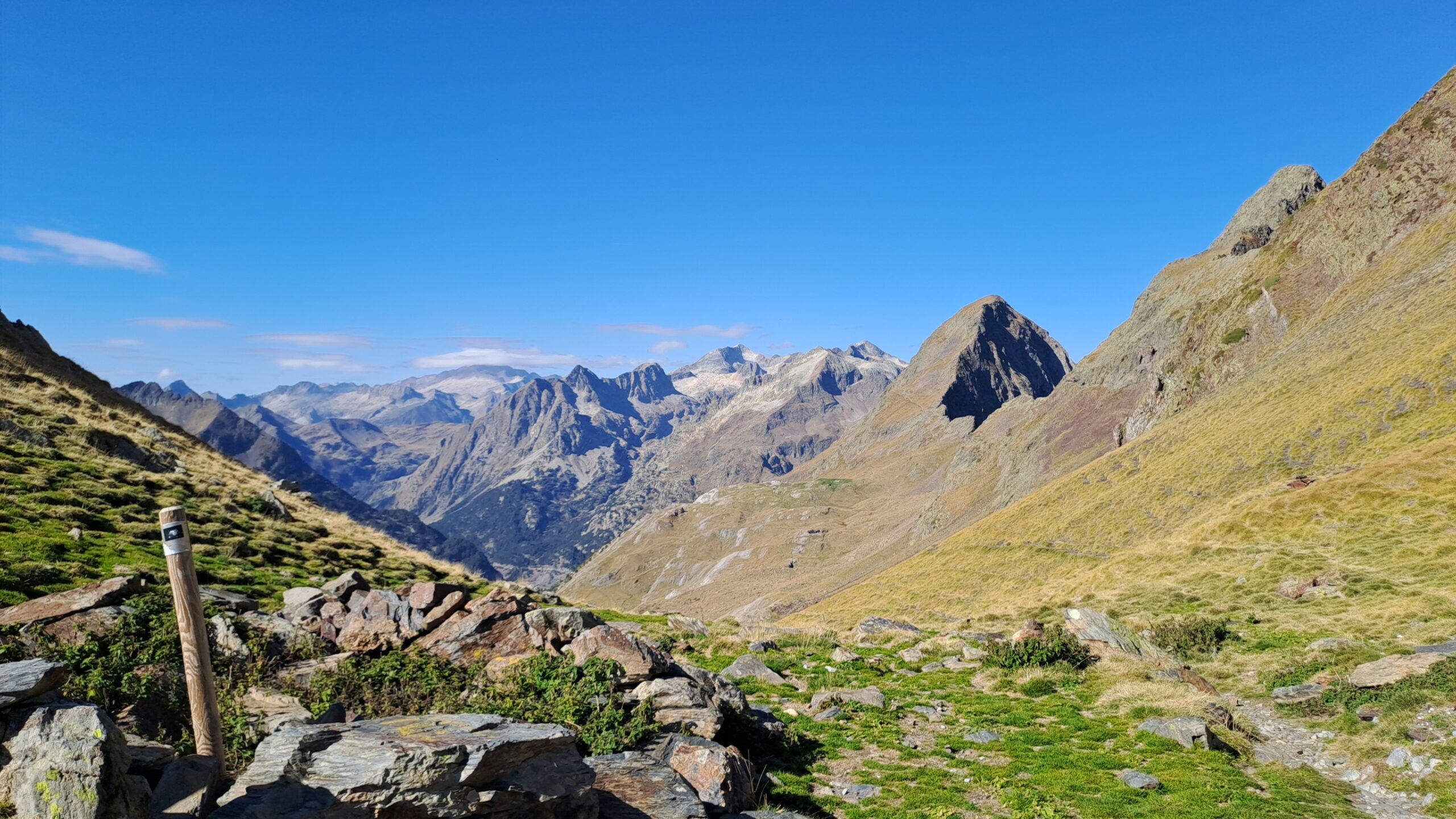 Du Port, nous avons une magnifique vue sur tout le massif espagnol de la Maladeta. Nous nous dirigeons plein Est, vers le port de la Picada. C’est là que nous prenons un temps pour nous restaurer et profiter du paysage et du soleil.