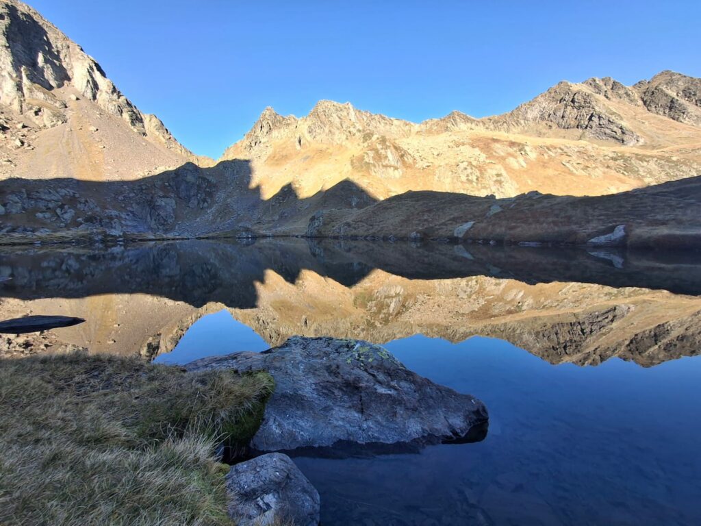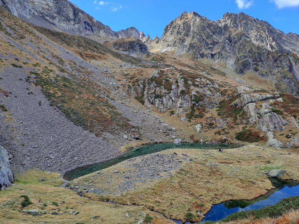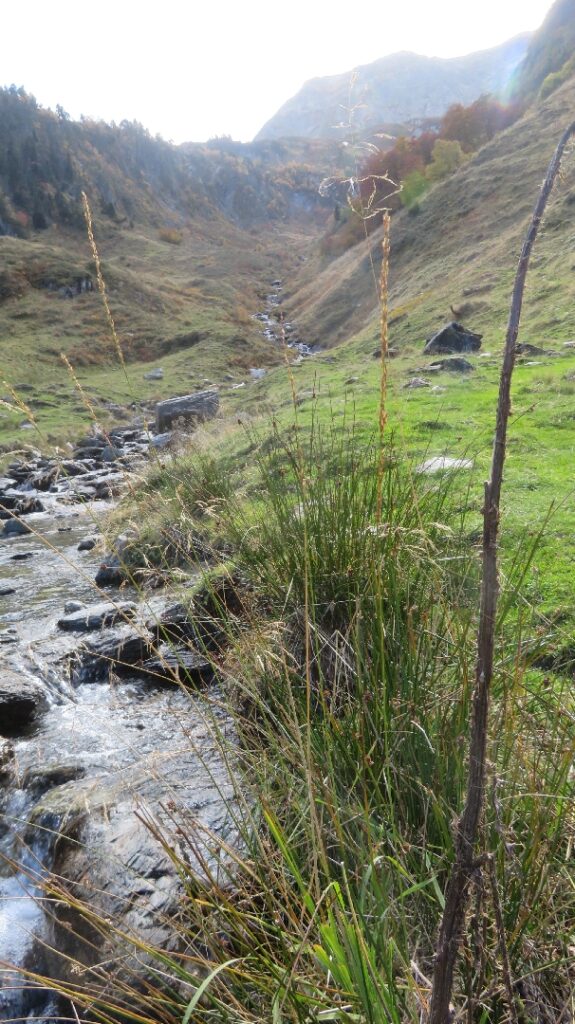 Commence alors une longue descente sur un sentier parfois escarpé et sauvage. Jusqu’à l’étang de la Frêche puis après quelques lacets bien raides jusqu’au ruisseau en fond de vallée.