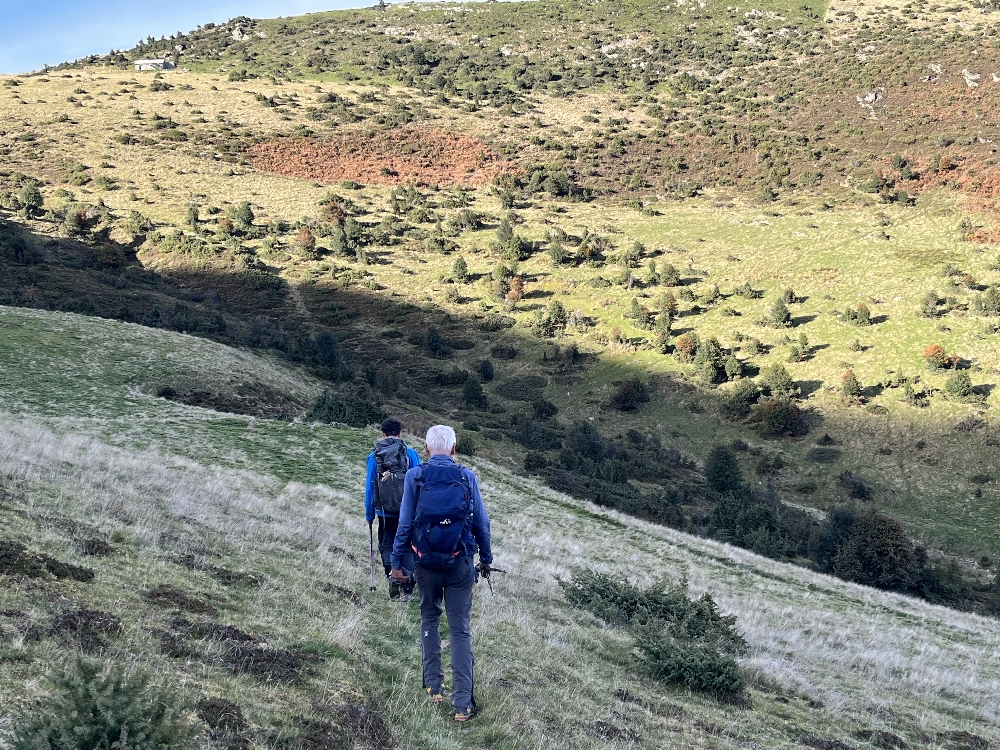 Après une pause contemplative, températures agréables, nous reprenons le sentier de la découverte. À la descente, deux arrêts, un à la cabane de Barguerasses (1 400 m – toiture refaite et table intérieure, sommaire) et le second à une ancienne mine d’ardoise.