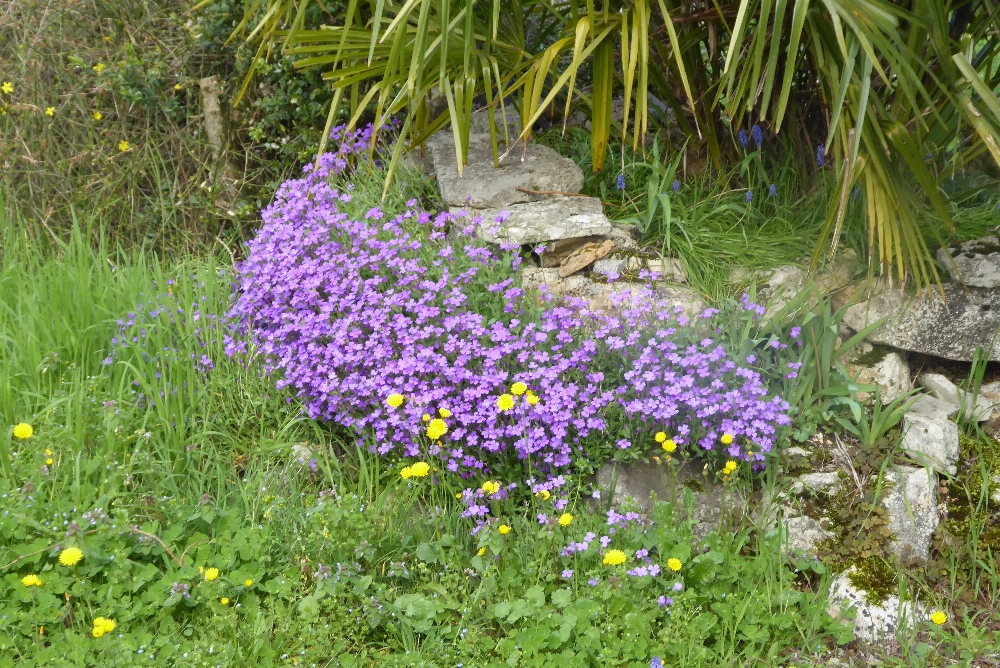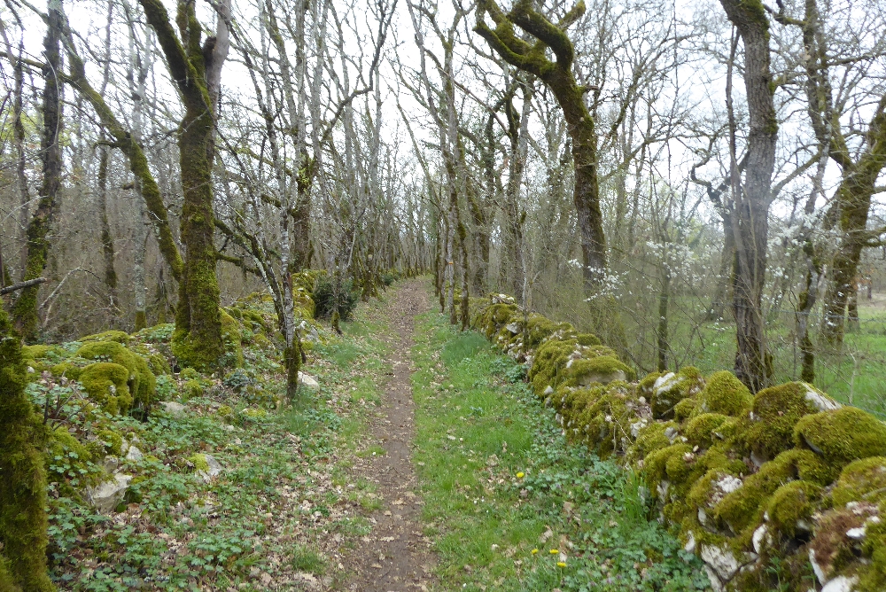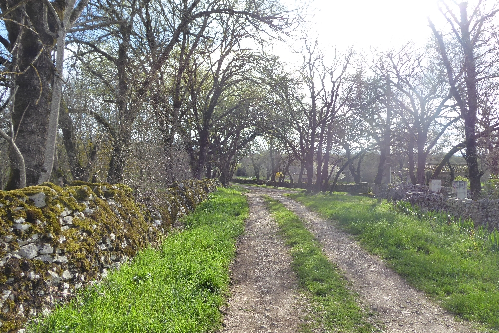 Passé ce village, on suit pendant un long moment de jolis sentiers bordés de murets de pierres sèches. L’ambiance est bucolique, les oiseaux chantent, le temps, favorable à la marche et aux discussions entre randonneuses. On prend des photos de violettes et autres fleurs qui cherchent le soleil : coucous, narcisses. On voit de très belles maisons où il doit faire bon d’y séjourner pendant les vacances.