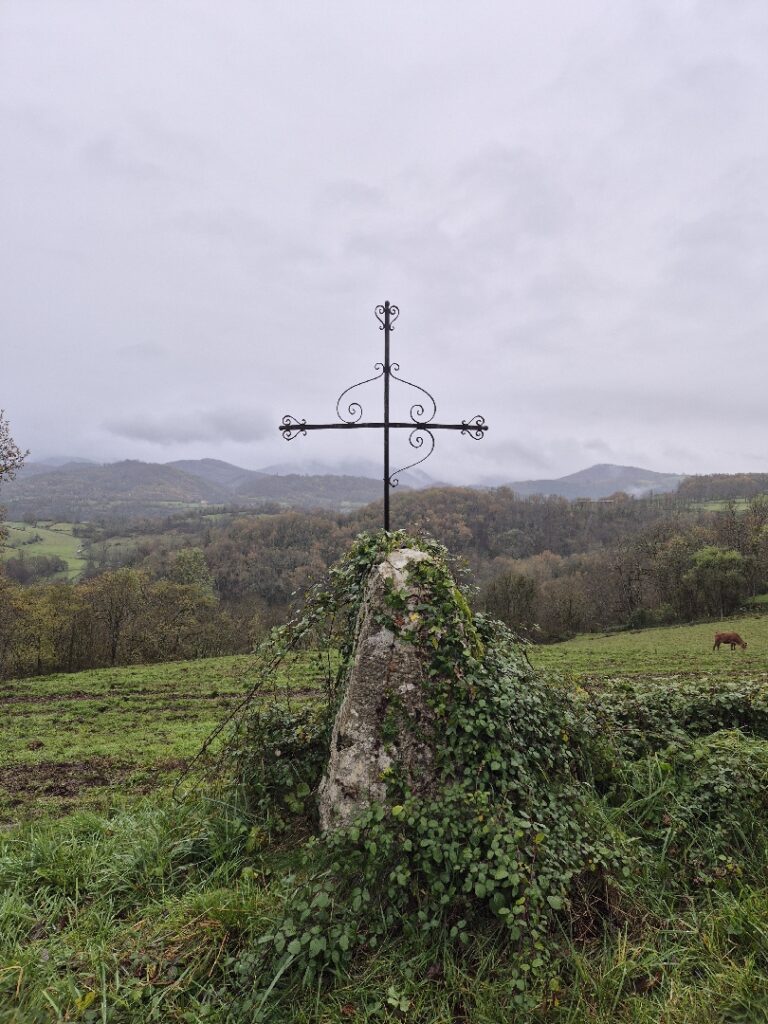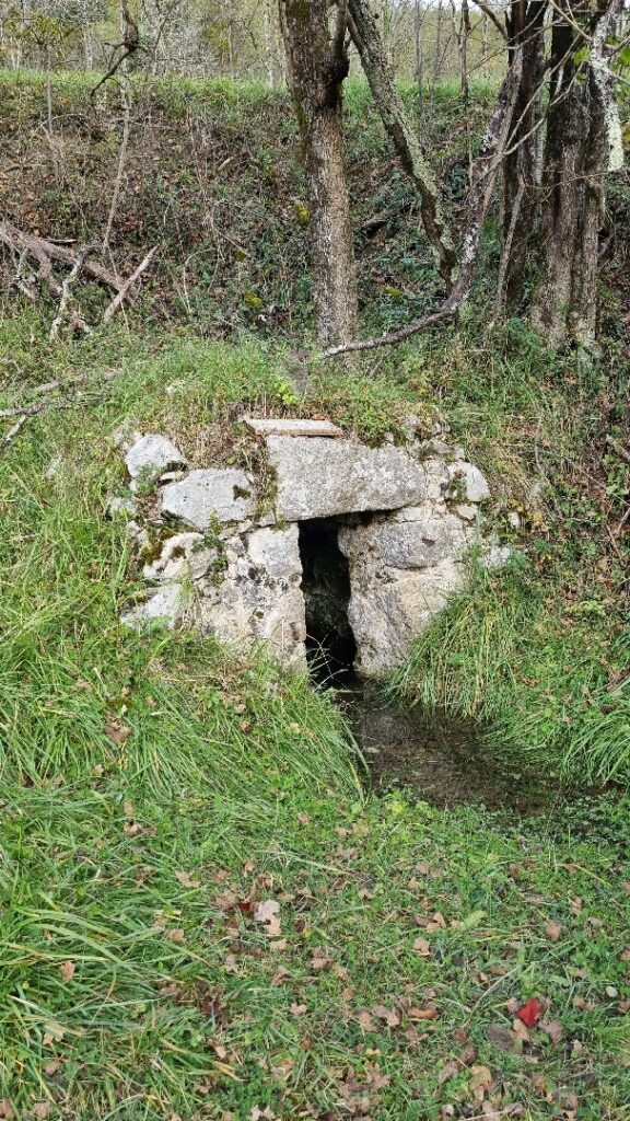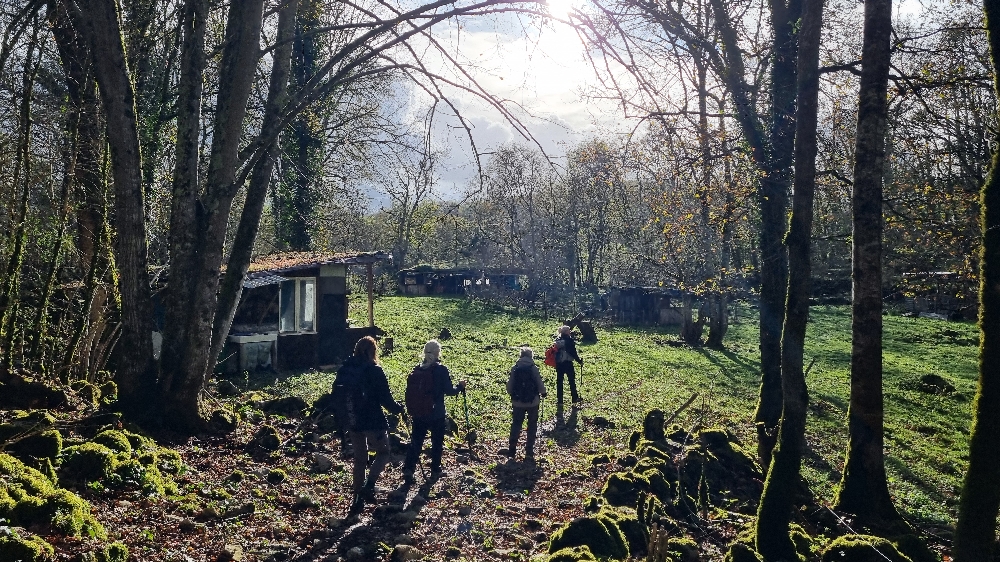 Nous démarrons de Durban vers 9h15 par une montée facile jusqu’à Francou. Un coup d’œil au lavoir et la montée devient un peu plus pentue. L’échauffement est terminé, et la pluie également. Les capes de pluie repartent dans les sacs à dos. Nous traversons le village de Montseron et bifurquons à droite au point côté 532 vers Le Pleich. Dans la forêt, seuls les chants des oiseaux embellissent le silence.