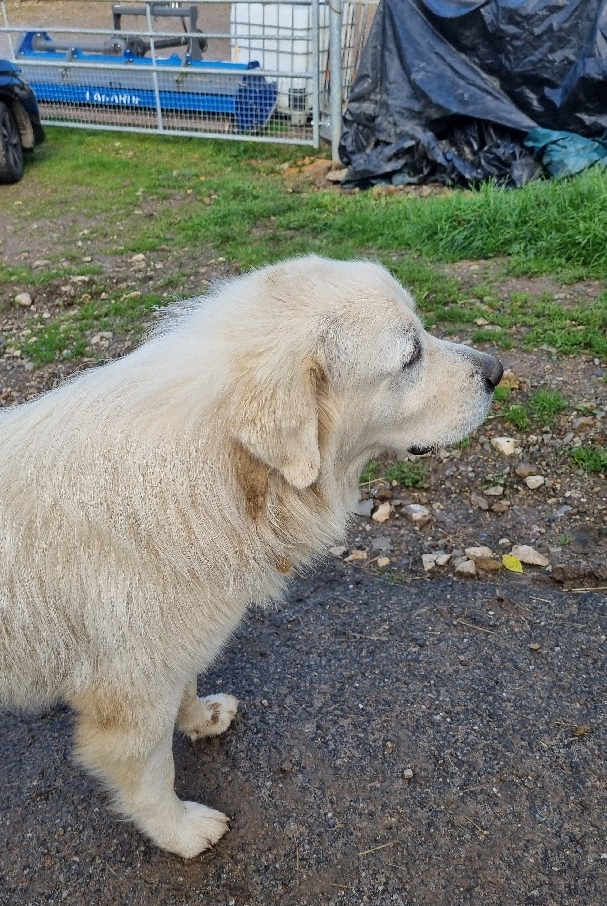 Nous sommes accueillis à la ferme Camp Bataillé par un jeune Patou. Il semble un peu craintif et passe derrière nous pendant la montée. Un deuxième patou le rejoint près de la ferme. Une dame nous rassure, ils sont gentils, et oui on peut les caresser ! Je pense qu’il n’en est pas de même des autres que l’on entend aboyer dans les granges.