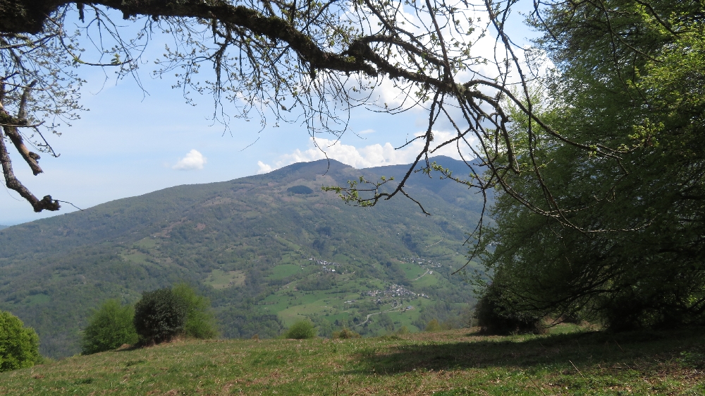 Le sentier de retour, en balcon, nous offre toujours cette vue magnifique, on aperçoit en dessous Bonac et Uchentein.