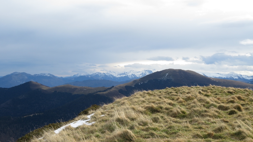 Après une petite demi-heure, nous repassons au sommet pour continuer notre itinéraire (circuit), toujours en crête (de bosse en bosse, Glouppe Hup et mont Castéra (1565 m), belles vues sur nos proches versants, vallons, verdoyants. Allez, maintenant nous descendons sur le col de Bas et sa cabane (sommaire, lugubre).