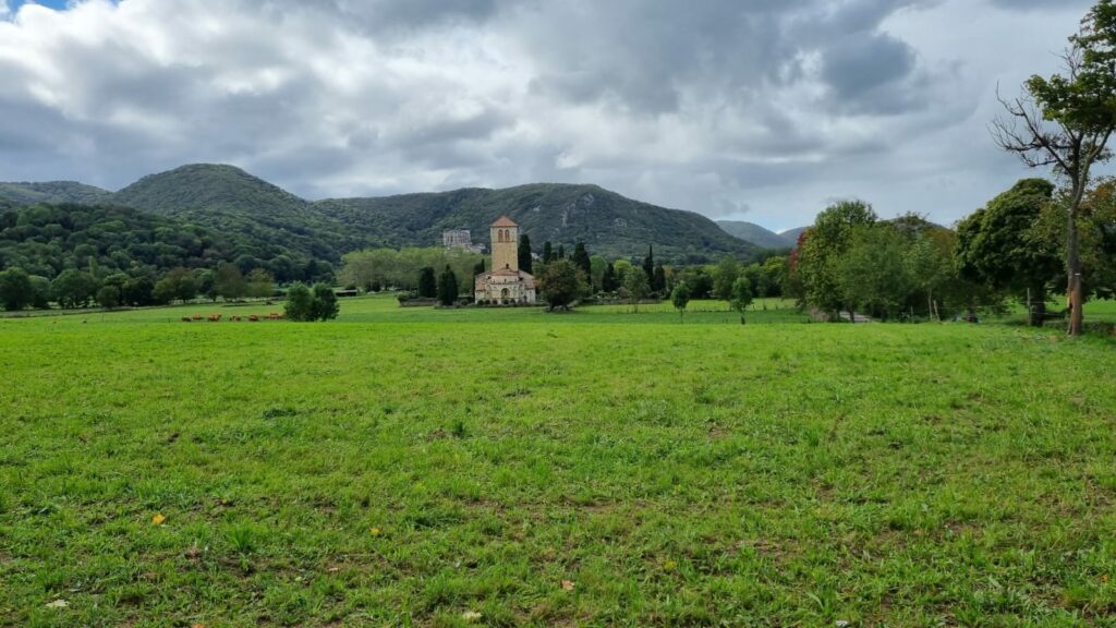 Nous sommes toujours dans les temps de la feuille de route prévisionnelle. Après la ville basse, la suite du programme est sur des tronçons goudronnés plats vers la célèbre Basilique Saint Just de Valcabrère.