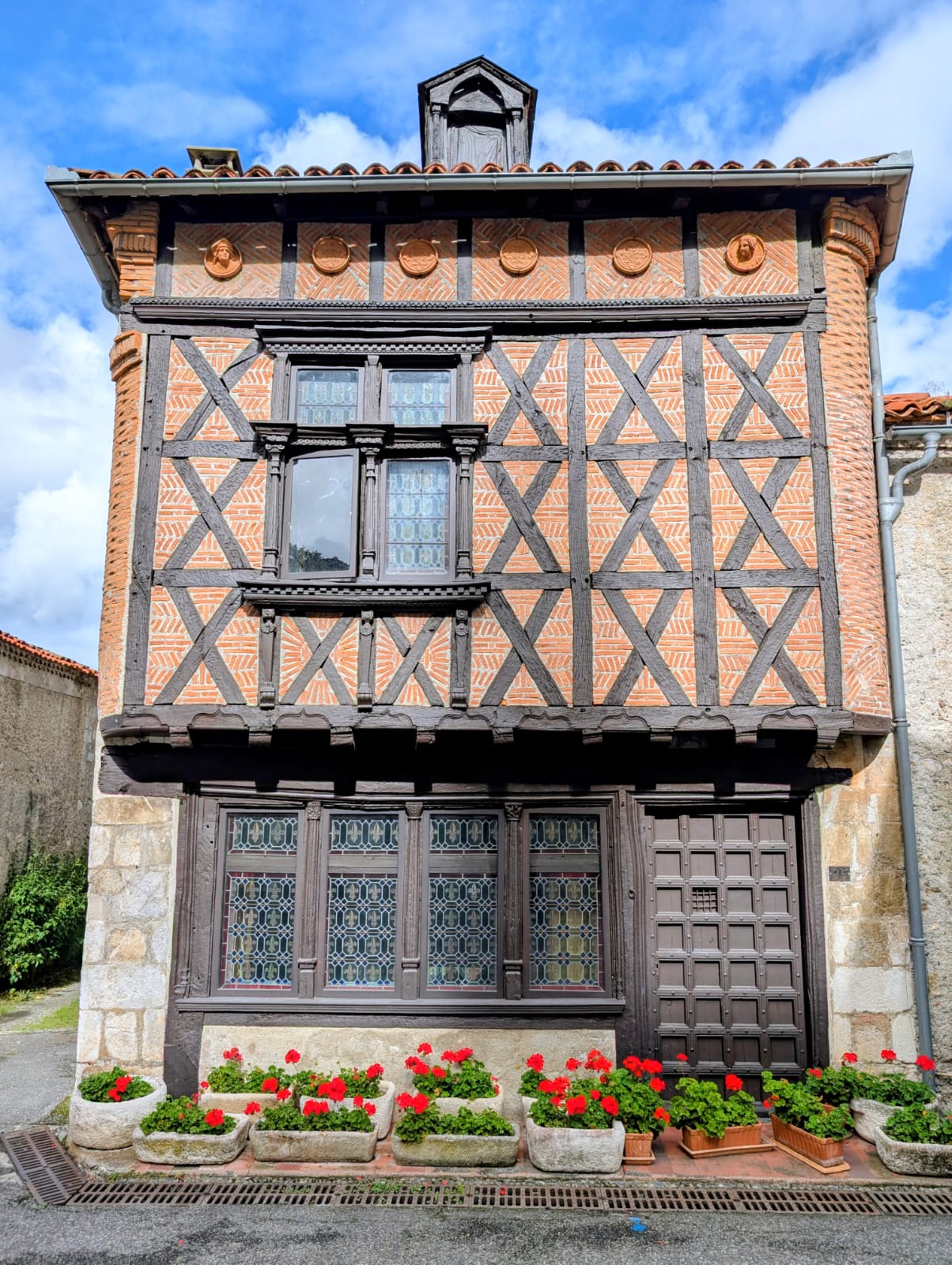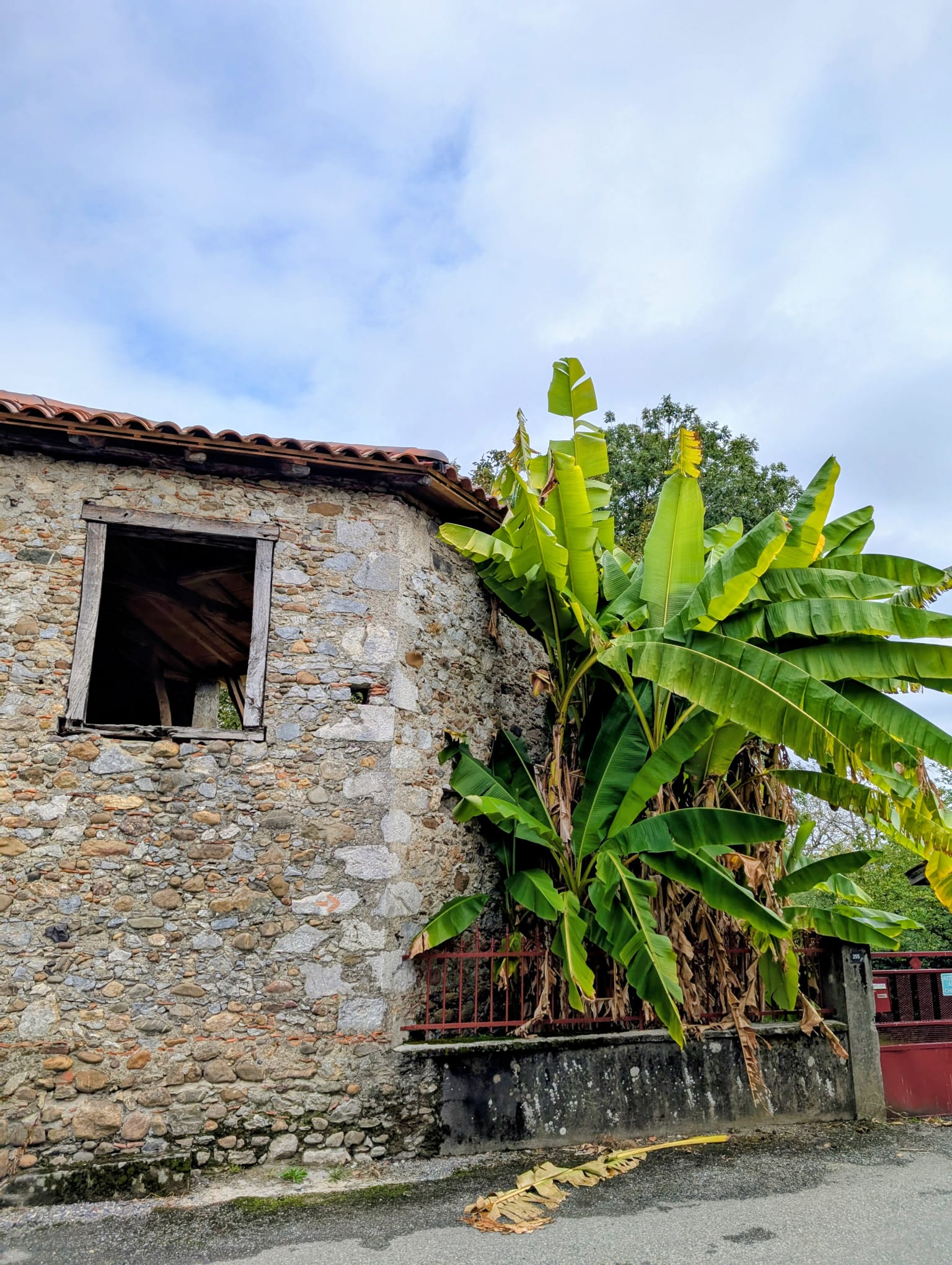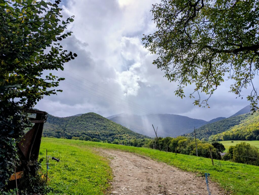 Au sortir de la forêt, nous continuons sur un chemin goudronné par le joli village de Tibiran, le chemin du Rieutord sur lequel nous croisons un chasseur qui surveille ses chiens par GPS à distance.