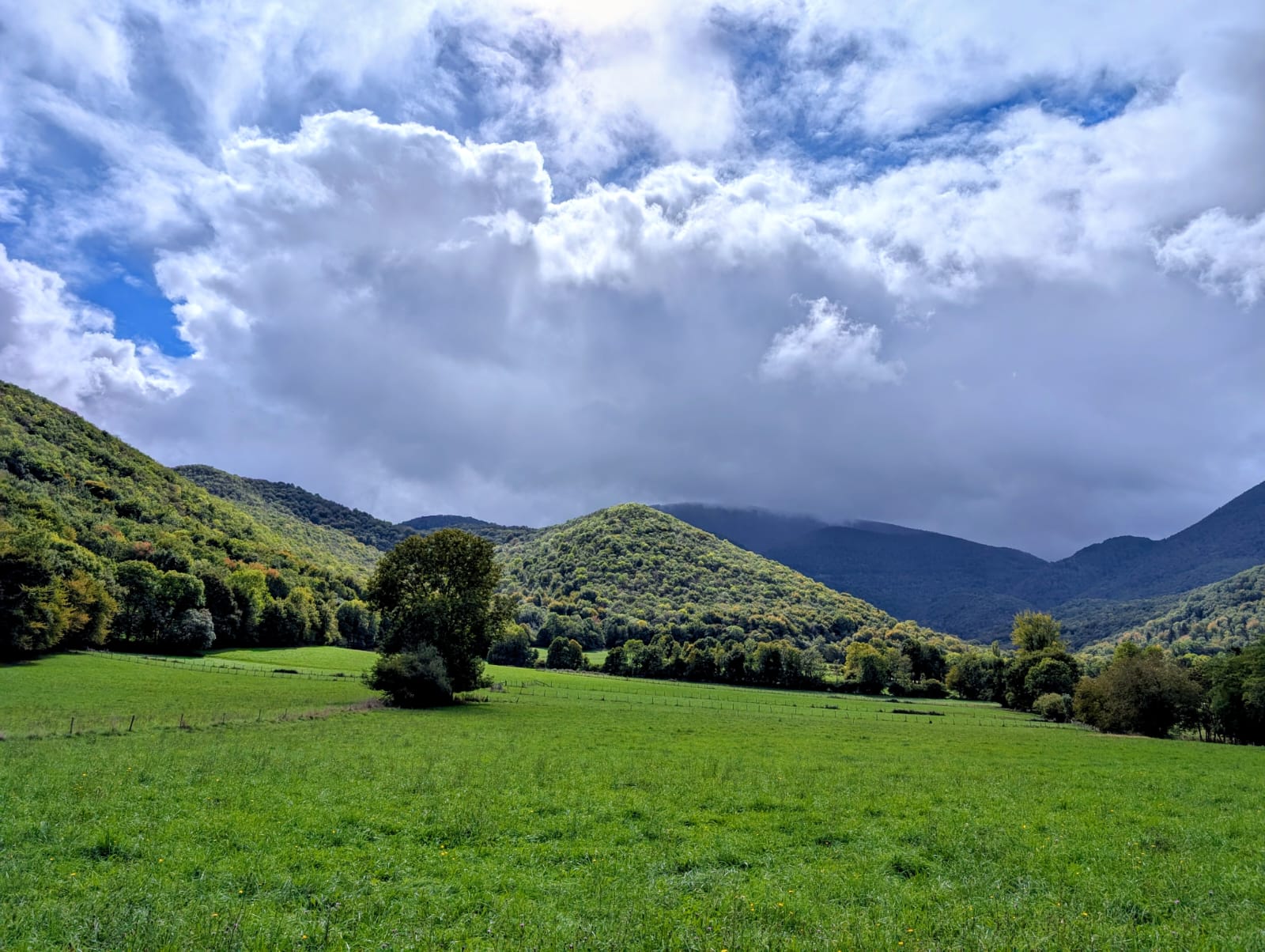 Après réparation de fortune avec un lacet, nous repartons en modifiant légèrement le trajet pour éviter une partie goudronnée, nous passerons à proximité mais pas devant l’entrée des célèbres grottes de Gargas.