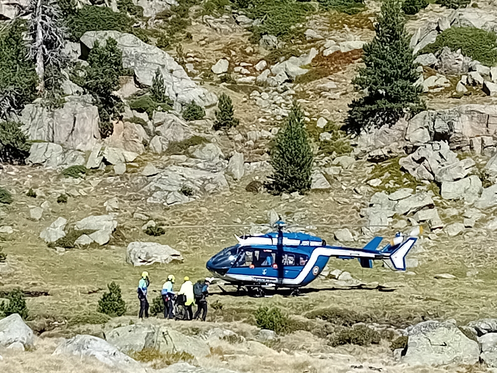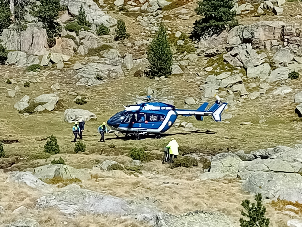 Un cycliste en VTC électrique est perdu au milieu du vallon. Il a passé la nuit dehors sans aucun équipement de bivouac ni nourriture après s’être franchement trompé d’itinéraire… comment a-t-il pu atterrir là au milieu de rien… à plus de deux heures de marche d’une route goudronnée ? L’homme de 66 ans, pieds nus, nous explique qu’il a suivi son GPS depuis la route, puis la batterie de son vélo est tombée en panne, puis celle de son téléphone. Il est incapable de nous dire par où il est passé, ne connaissant pas cette montagne. Quand nous lui demandons si ce sont ses affaires que nous avons trouvées le long du chemin, il nous confirme que oui, il les a perdues, ce qui nous permet de déduire qu’il est passé par le col d’Aumar à 2 300 m par un sentier chaotique avec des blocs de pierre à franchir avec un vélo électrique en panne de 26 kg ? Bref tout le monde hallucine… Nous lui fournissons quelques vivres de course et lui prêtons un téléphone pour qu’il puisse appeler et rassurer son épouse qui est en cure dans les Landes. Son histoire étant totalement improbable, nous nous demandons s’il n’est pas en choc traumatique après ce périple et cette nuit de gel seul en montagne. Nous lui demandons s’il souhaite que nous appelions les secours. Il est d’accord mais nous précise qu’il veut rentrer avec son vélo… Nous lui signalons que les secours ne prendront pas son vélo. Il accepte qu’on les appelle. Le 112 se demande si nous sommes sérieux quand on leur décrit la situation mais décide d’envoyer un hélicoptère du PGHM. Nous nous mettons à l’écart pour le laisser atterrir auprès du cycliste et assistons à une scène ubuesque. Les gendarmes ne peuvent et ne veulent pas emporter le vélo. Un des gendarmes se fâche avec l’homme qui ne veut pas monter dans l’hélico sans son vélo. Le gendarme lui arrache des mains et le jette au sol. L’homme refuse ensuite de monter dans l’hélico et il semble que les gendarmes lui font signer une décharge puisqu’il refuse d’être secouru. L’hélico et l’équipe de secours repartent donc laissant l’homme et son vélo dans le vallon… Que peut-on faire de plus pour lui ? Nous remontons le sentier vers le col, il nous rejoint (sans son vélo) et lui indiquons la direction du col. S’étant repéré, il redescend chercher son vélo… nous laissant dubitatifs et un peu inquiets quant à son devenir. Nous en informons son épouse par téléphone.