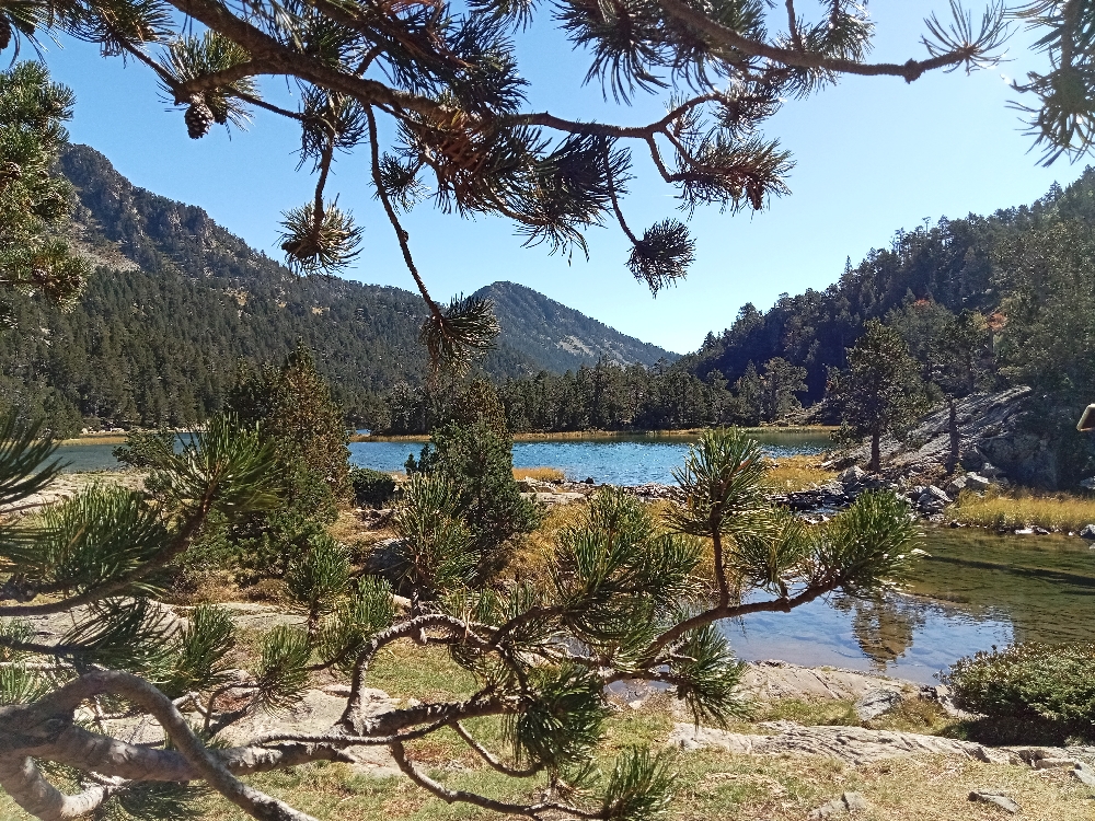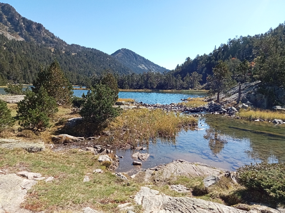 Les Laquettes sont une suite de petits lacs pyrénéens qui communiquent entre eux. Le sentier des Laquettes est accessible à tout public depuis le lac d’Aubert. De notre semaine à St Lary, c’est sur ce seul sentier que nous avons rencontré des promeneurs. À gauche, le sentier est bordé de pins à crochets et à droite du lac nous pouvons apercevoir le pic d’Aumar et le pic du Néouvielle.