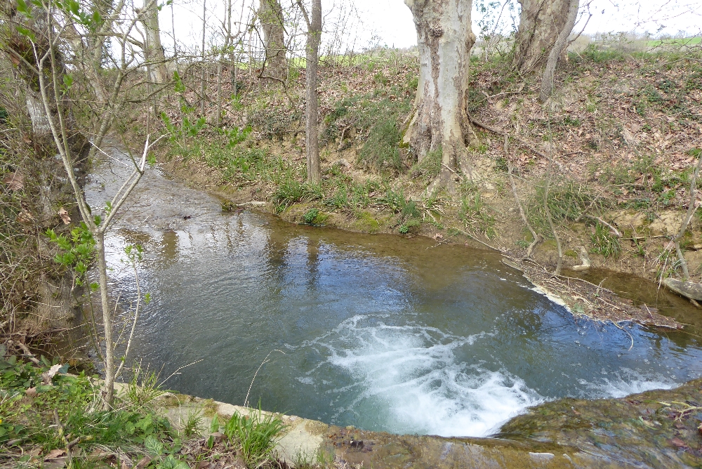 Nous repartons direction le village en longeant « l’Hers mort » que nous traversons sur une passerelle maison pour rejoindre plus tard la route qui nous ramène vers le village.